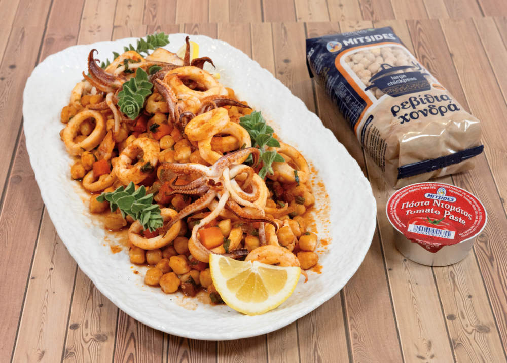 Καλαμαράκια με ρεβύθια και μαντζουράνα