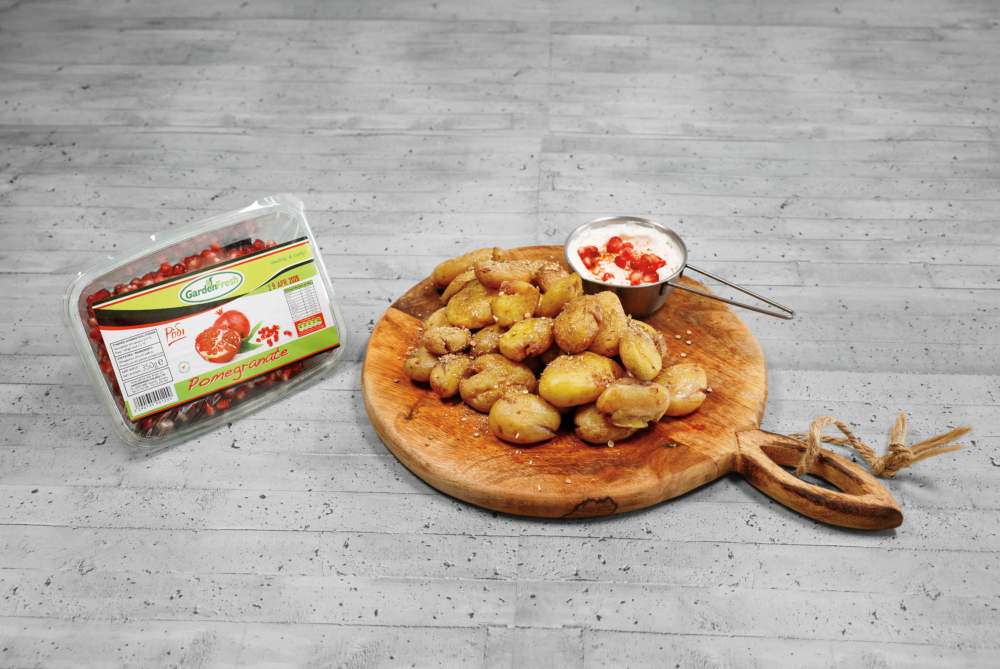 Πατάτες αντινακτές με dip γιαουρτιού και ρόδι