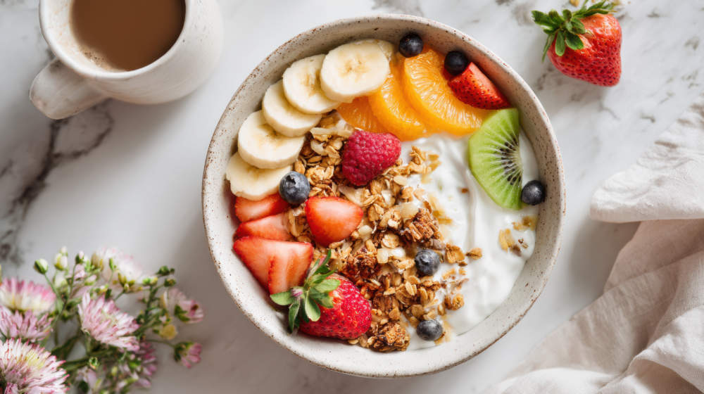 Υγιεινό μπολ με γιαούρτι και φρούτα